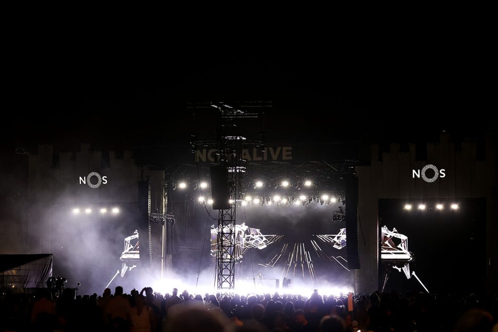 Desde a abertura das portas do recinto para este segundo dos três dias do festival, quando o primeiro festivaleiro ultrapassou o pórtico NOS, não houve mais nenhum momento de precipitação, e com o caminhar das horas, o céu cinzento da manhã acabou por dar lugar a uma noite tropical junto ao Tejo em mais um dia do NOS Alive 2025.
