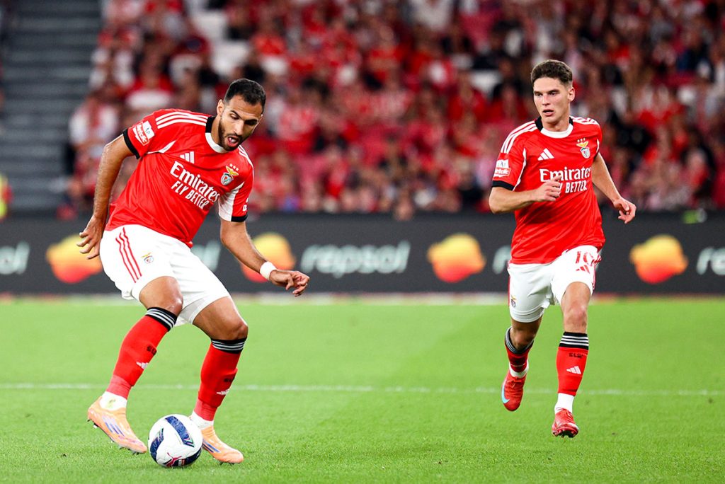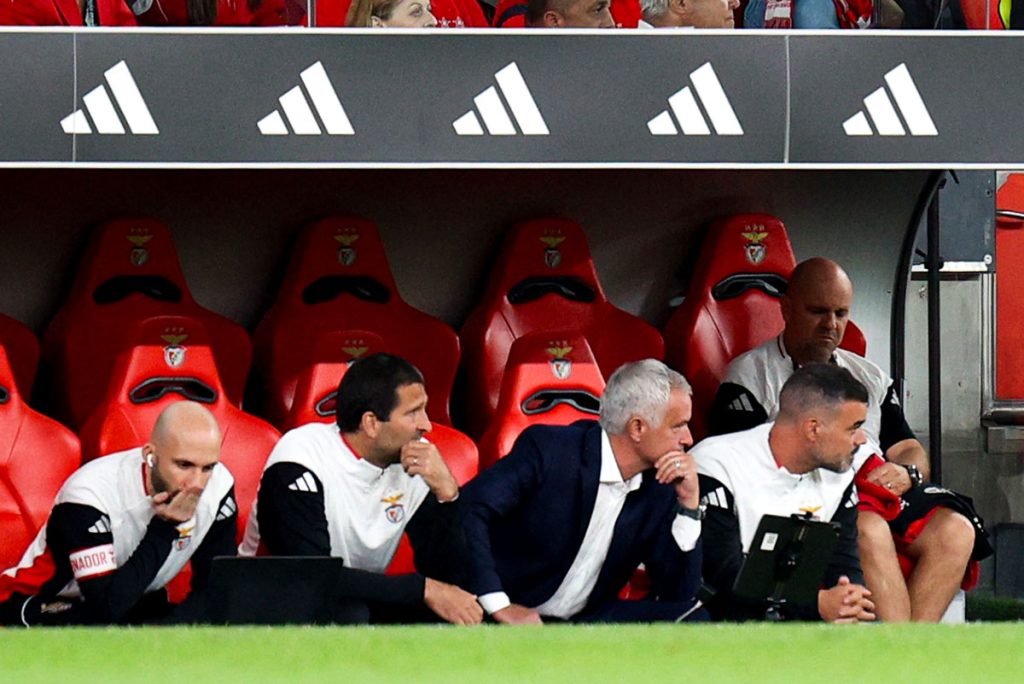Sem poder contar com Enzo Barrenechea, que cumpriu um jogo de castigo por ter visto uma primeira série de cinco cartões amarelos, o técnico José Mourinho escalou um onze do Benfica com o quarteto defensivo do costume à frente de Trubin (Dedic, António Silva, Otamendi e Dahl), colocando na linha média Aursnes, Richard Ríos e Sudakov, jogando na frente Lukebakio e Schjelderup no apoio a Pavlidis.