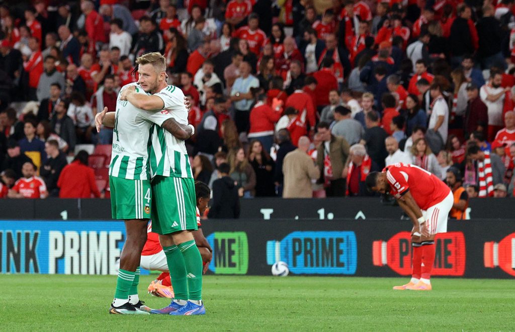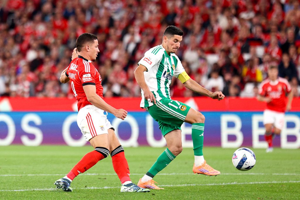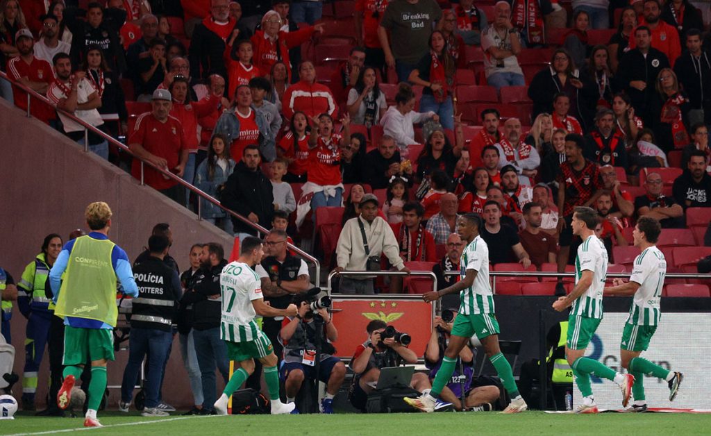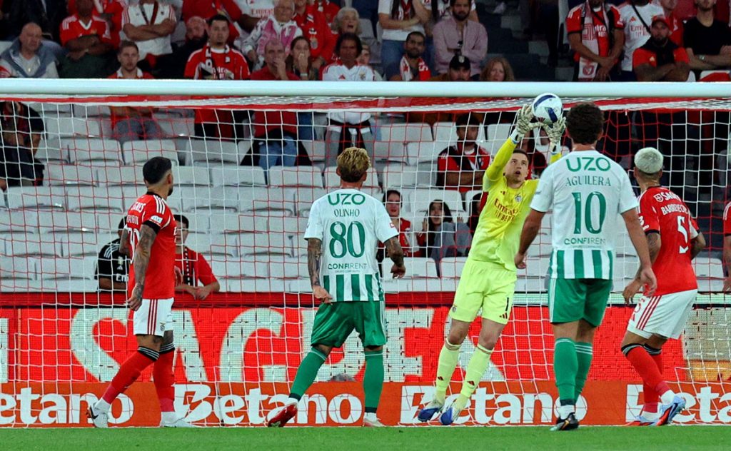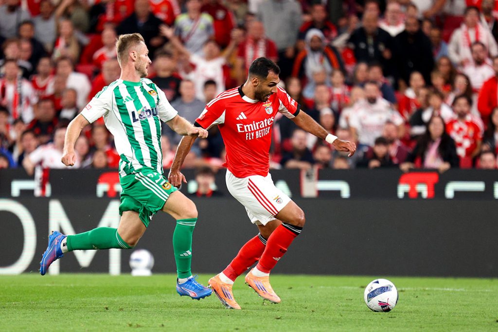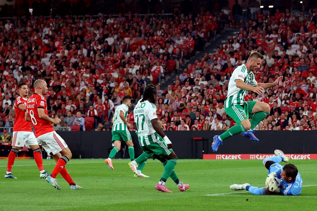 Lukebakio causou um primeiro “bruá” ao apostar num chapéu a Miszta que falhou por pouco. Pouco depois, o mesmo Lukebakio inventou um cruzamento a partir do lado direito com Pavlidis e Rios a chegarem tarde para a finalização do que parecia poder ser um golo fácil – dentro da pequena área nem Pavlidis nem Ríos conseguiram tirar partido do cruzamento do belga –, levando os adeptos benfiquistas ao desespero.