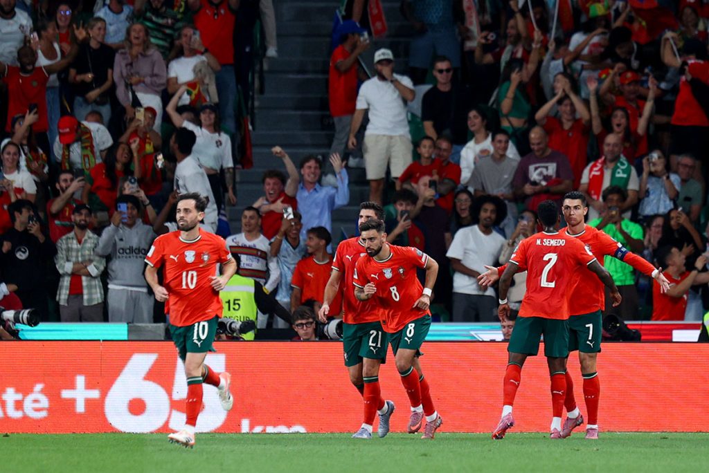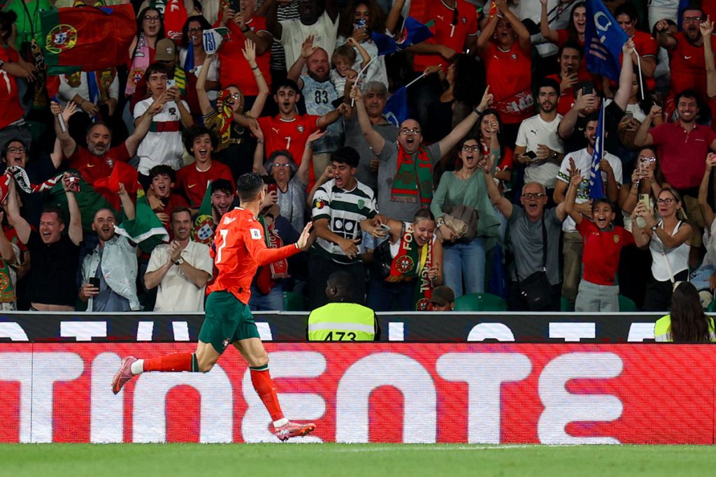 Só que Portugal acreditou e, empurrado pelo seu capitão, Cristiano Ronaldo, a jogar no estádio que o viu começar no futebo “a sério”, acabou mesmo por dar a volta a resultado, com um recital de eficácia pura. Dois golos, o primeiro dos quais ao minuto 22′, em resposta a um cruzamento de Nelson Semedo a partir do lado direito do ataque, e o segundo ao minuto 45’+03′ após passe de Nuno Mendes, permitiam a Cristiano Ronaldo passar a somar 143 em jogos da Seleção e a Portugal ficar em condições para garantir logo ali, em Alvalade, o passaporte para o Mundial de 2026.