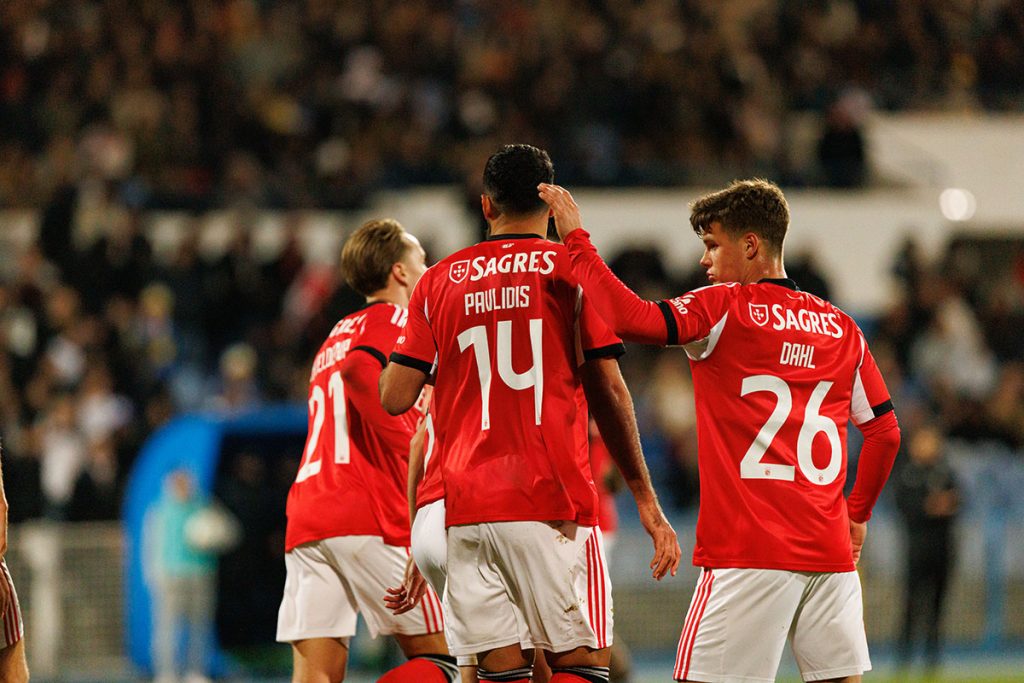 A vencer por 1-0, o Benfica beneficiou de uma grande penalidade, uma falta clara cometida sobre Leandro Barreiro dentro da área da turma de Alcântara que resultou no castigo máximo favorável aos encarnados. Chamado a converter, Pavlidis rematou a bola rasteira para o lado esquerdo do guarda-redes Rodrigo Dias, este adivinhou o lado do remate mas, ainda assim, deixou a bola passar por baixo do corpo, conseguido assim o Benfica o tranquilizador segundo golo no marcador, isto quando estavam passados 77 minutos.
