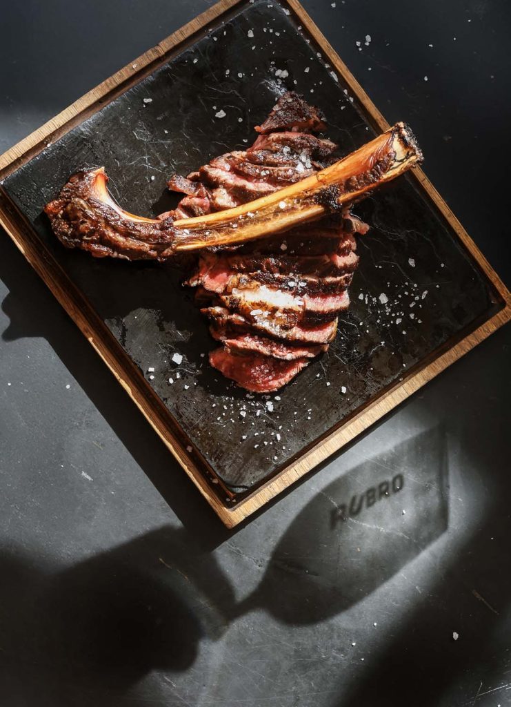 O Menu Rubro é apresentado como “uma viagem de intensos sabores onde a carne é a protagonista. Como prato principal, o destaque vai para o famoso Chuleton de Buey, grelhado no seu ponto favorito e servido com salada mista.”
